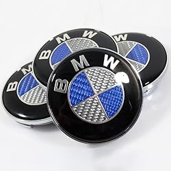 - 4 x BMW Blue/Silver Real Carbon Fiber Wheel Center Caps