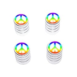 Very cute very original tye dyed little peace signs adds a little pizzaz to your car rims of course one must be close to tires to see the valve stem covers at all these are feminine there are many varieties to choose from tho check em out