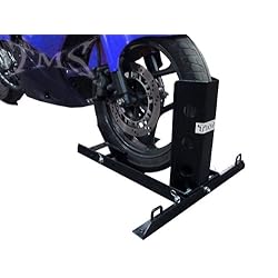 the chock works well BUT, the bolt center front sticks out and scratches the truck box, a piece of 2x2 between the stand and truck solved that. After 1200 miles the chock had chewed through the rubber on one side of a Harley 130/80B17 tire. Would work well for narrower tires but the rear support needs to be spread for the harley front tire. Would probably be ok for short hauls.